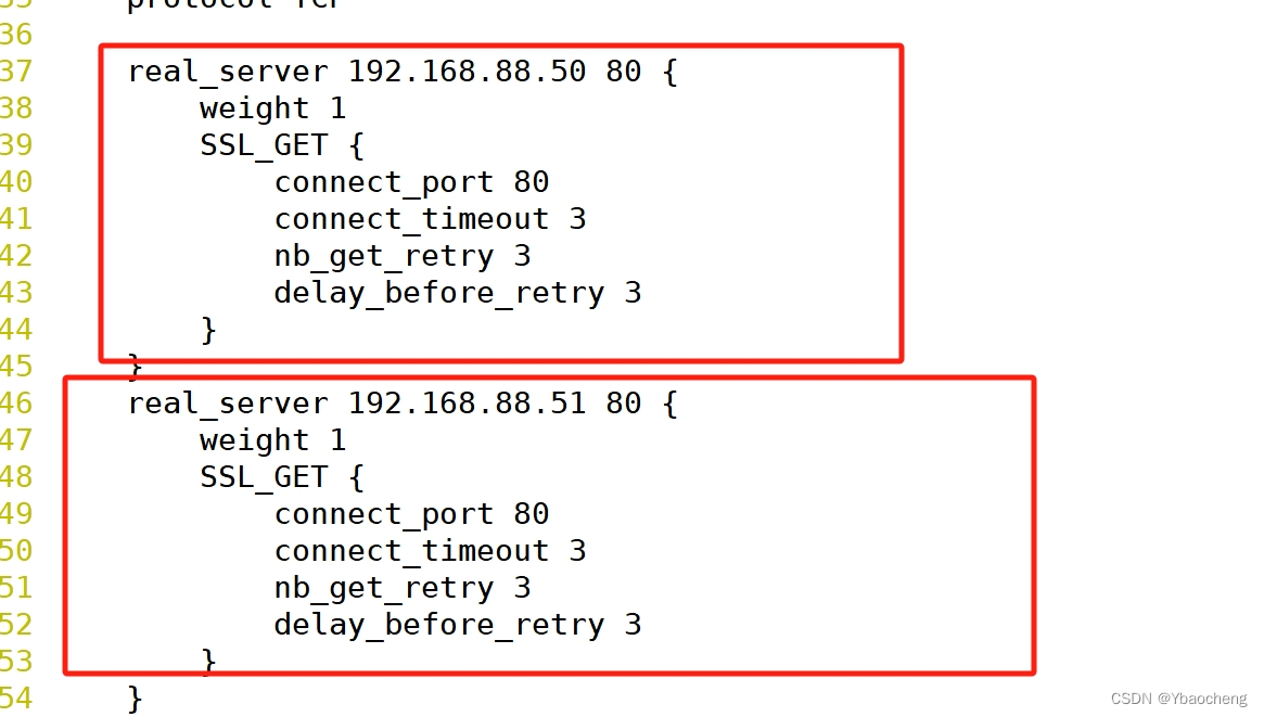 real_server 192.168.88.50 80          #43行修改,指定第一个Web节点的地址、端口