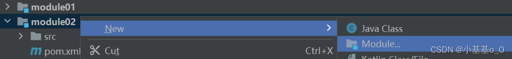 module02想要调用module01,就要在module02的pom.xml添加依赖(去module01那粘贴)