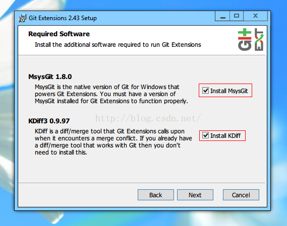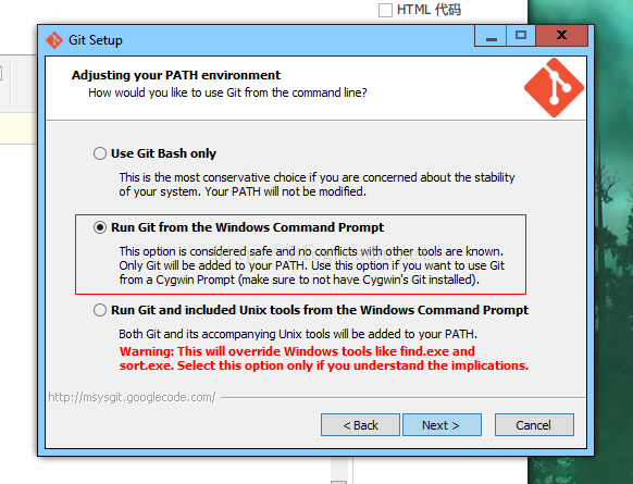 开始安装。在安装的过程中会弹出KDiff3和Git的安装向导,一路NEXT即可。请在Git的安装过程中确认选择了“Run Git from the Windows Command Prompt”这一选项。