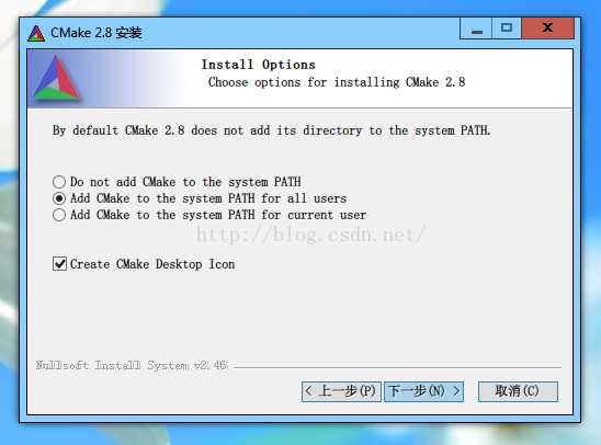 选择将CMAKE添加至环境变量,其他一路下一步。