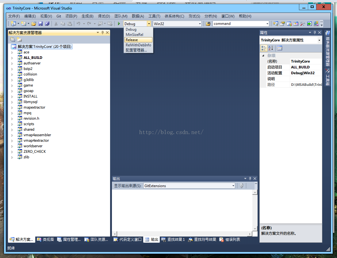 TrinityCore 的源码通过Git提供的命令行工具你可以轻松地获取最新的TC源码,但对于新开发者,甚至是所有的开发者,我推荐使用Git Extensions这个图形化的工具。你可以在: