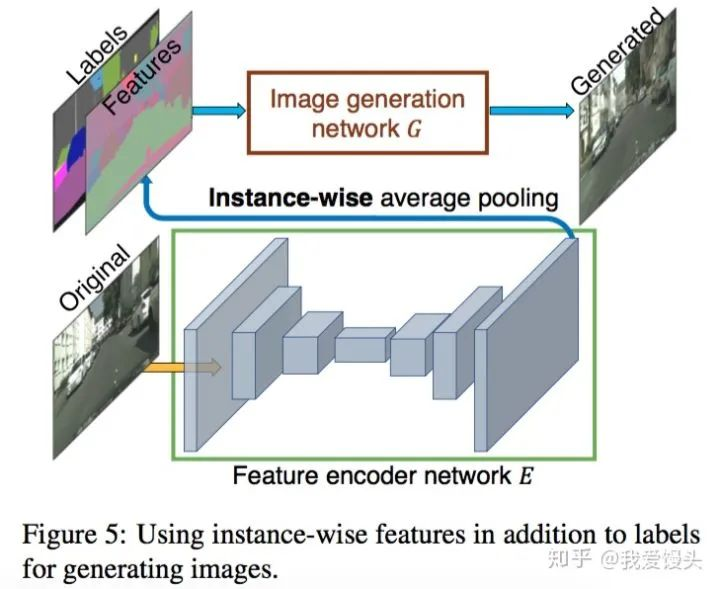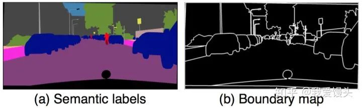 pix2pix采用语义分割的结果进行训练,可是语义分割结果没有对同类物体进行区分,导致多个同一类物体排列在一起的时候出现模糊,这在街景图中尤为常见。在这里,作者使用个体分割(Instance-level segmention)的结果来进行训练,因为个体分割的结果提供了同一类物体的边界信息。具体做法如下: