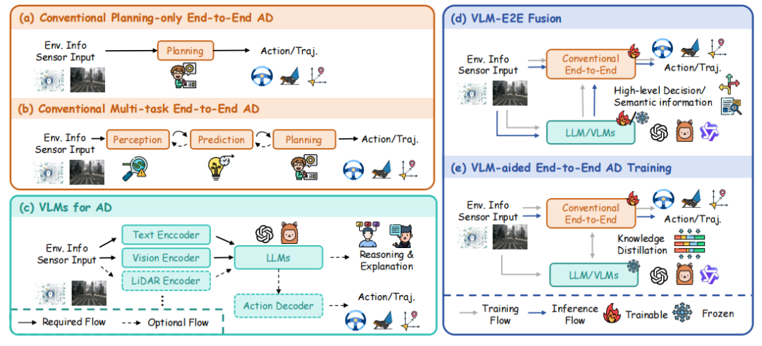 这就导致一个问题:研究者很难在同一坐标系下,同时看清“传统端到端”和“VLA 范式”之间到底有何本质差异、又在哪些方面殊途同归。