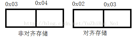 非对齐存储:CPU在读取(说明下32位系统有32根地址线,所以CPU每次都读取32位也就是4个字节的数据)数据时,首先读取0x00地址到0x03地址上的4个字节数据,然后分析只有0x03地址上的数据才是CPU想要的,所以保留这个字节的数据。接着读取0x04地址到0x07地址内的4个字节数据,分析可的只有0x04地址上的数据才是CPU想要的,所以保留下。