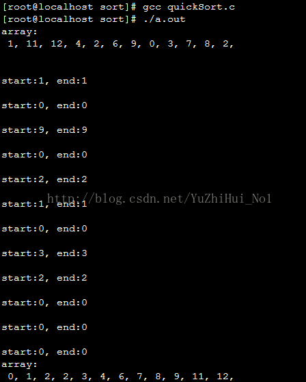 quickSort(array + start + 1, length - start - 1);// 递归排序大于哨兵元素的那一列