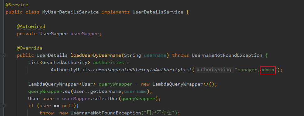 public class MyUserDetailsService implements UserDetailsService {