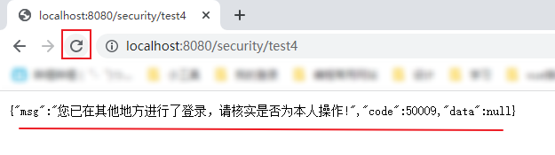 map.put("msg","您已在其他地方进行了登录,请核实是否为本人操作!");