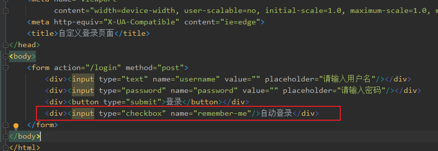 在登录页面添加复选框,要求name值必须为remember-me,否则SpringSecurity找不到。