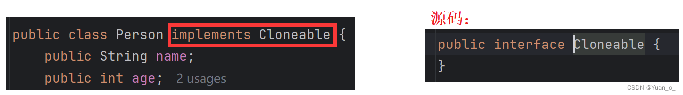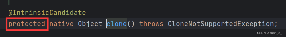 发现报错了,我们查看Object 类的源码,发现 Object 类中的 clone() 方法是 protected 修饰的,无法在不同包的不同类中使用,所以,我们需在Person类中重写clone()方法