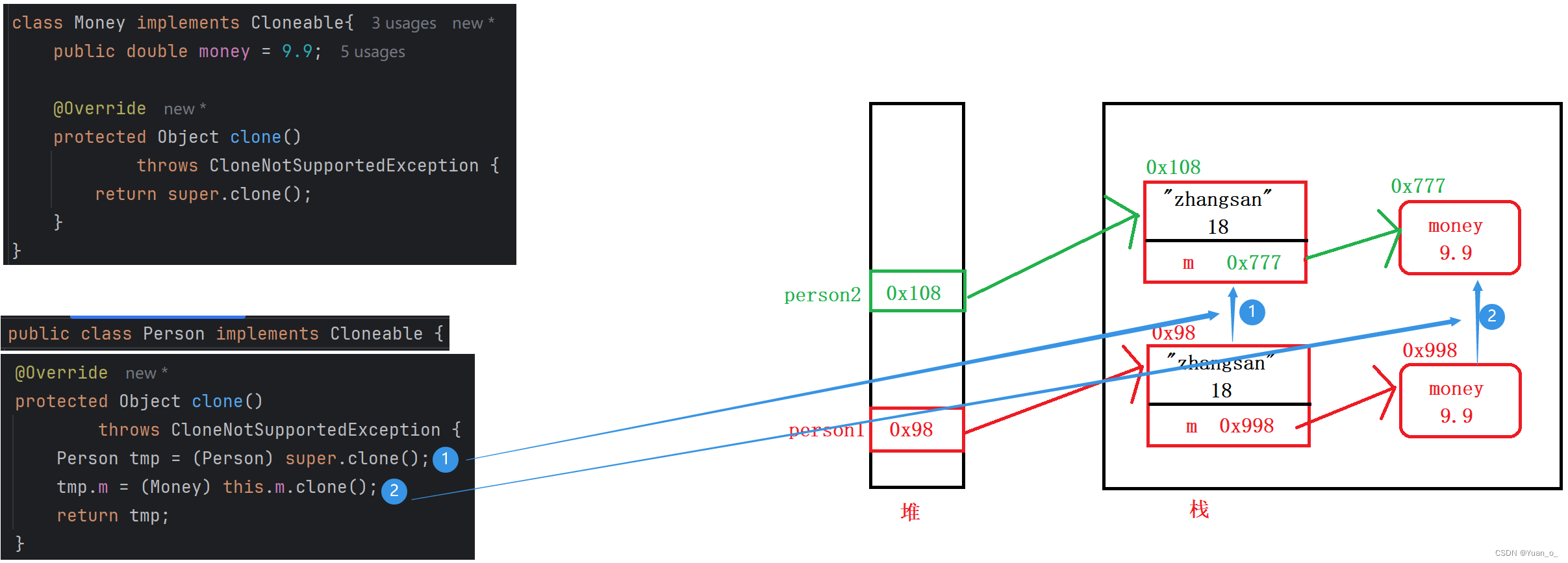 如果即克隆了Person对象,又克隆了Money对象,就叫做——深拷贝