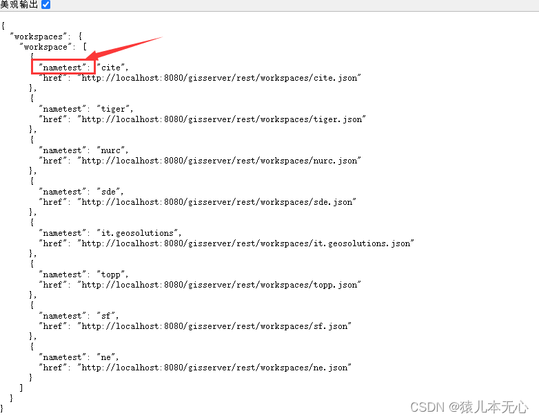 http://localhost:8080/geoserver/rest/workspaces.json (作为前端调用的接口居多)