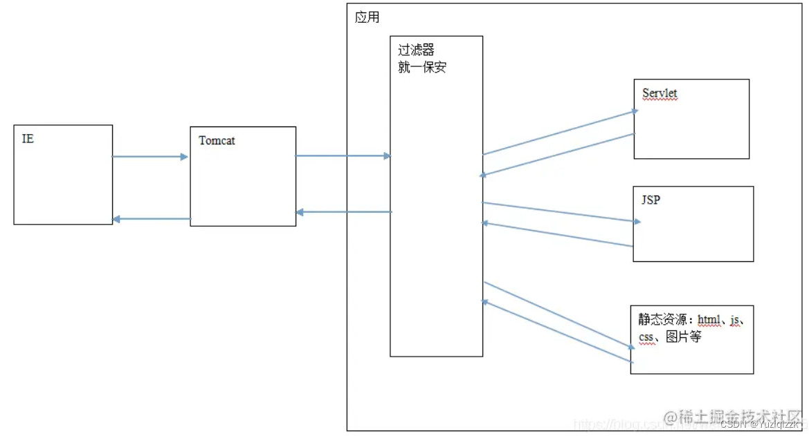 通过Filter技术,可以对web服务器管理的所有web资源:例如Jsp, Servlet, 静态图片文件或静态 html 文件等进行拦截,从而实现一些特殊的功能。例如实现URL级别的权限访问控制、过滤敏感词汇、压缩响应信息等一些高级功能。