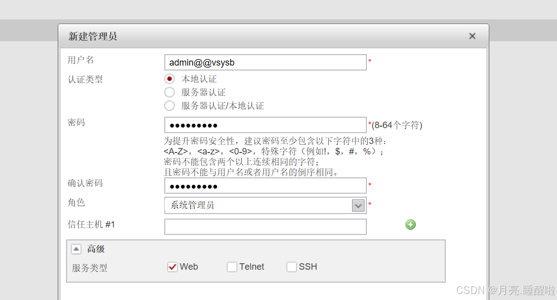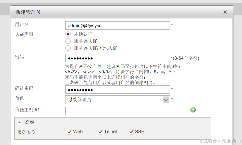[FW1-vsysa-aaa]bind manager-user admin@@vsysa role system-admin