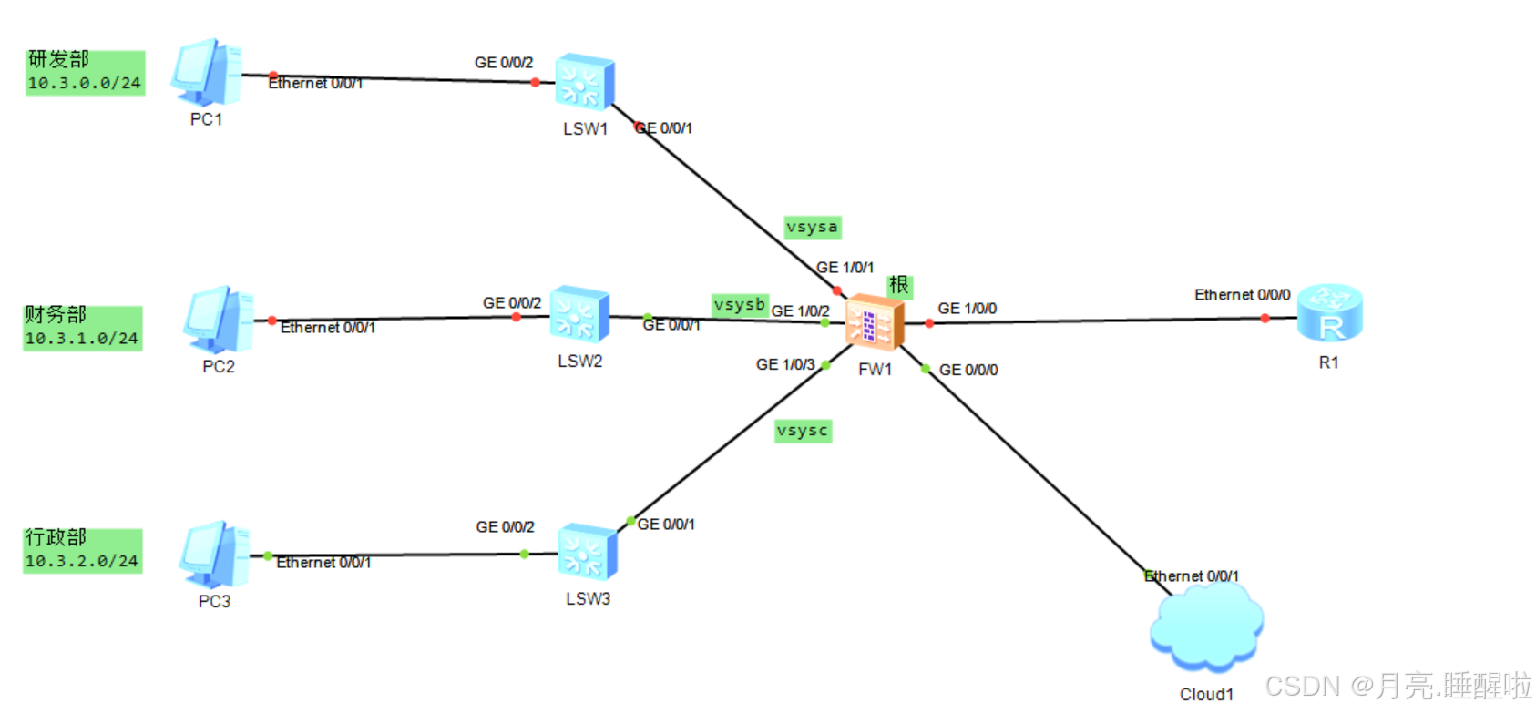 [FW1-vsysa-GigabitEthernet1/0/1]ip add 10.3.0.254 24