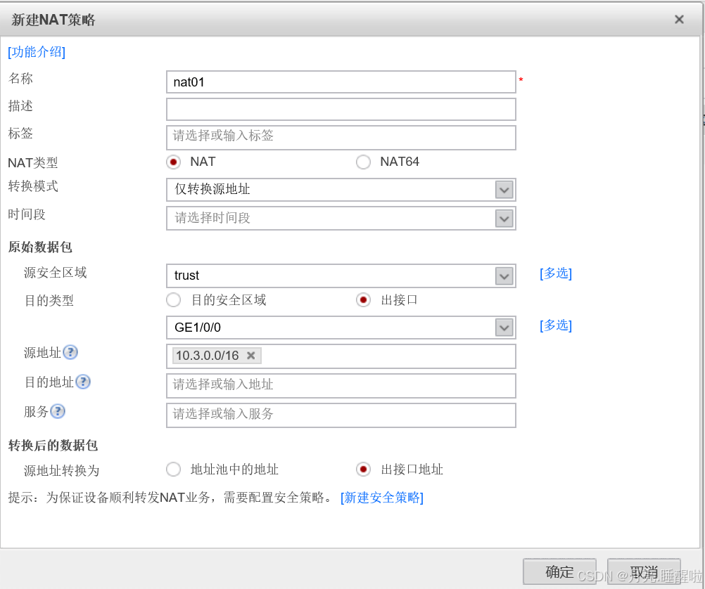 [FW1-vsysc-GigabitEthernet1/0/3]ip add 10.3.2.254 24
