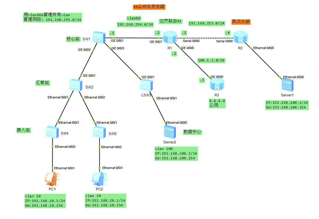 ENSP网络综合实验,三层网络架构