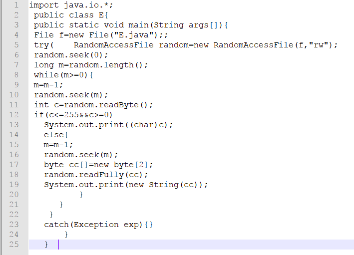 1.使用RandomAccessFile流将一个文本文件倒置读出。