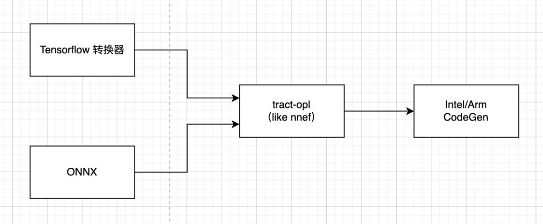 NNEF 格式对于推理目的来说几乎是理想的,但该格式并不够主流,大多数软件集成商希望能够直接支持 ONNX 或 TensorFlow。所以,tract 引入了 tract-opl,它在语义上与 NNEF 非常接近:专注于简单操作,而不考虑 ONNX 和 TensorFlow 格式编码的高级训练特性。它被设计为一组 NNEF 扩展:如果模型不使用 NNEF 不包含的任何特性或运算符,tract 实际上可以将 tract-opl 序列化为纯 NNEF。这也意味着 tract 可以从 ONNX 和 TensorFlow 转换为 NNEF。
