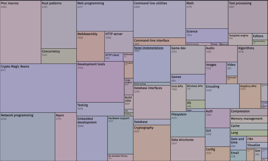 一门语言最重要的就是其生态。截止目前,crates.io 上面 crate 数量已经超 12 万,下载量已达到 393 亿次。虽然,Rust 学习曲线较高,但也没有阻碍生态的发展。