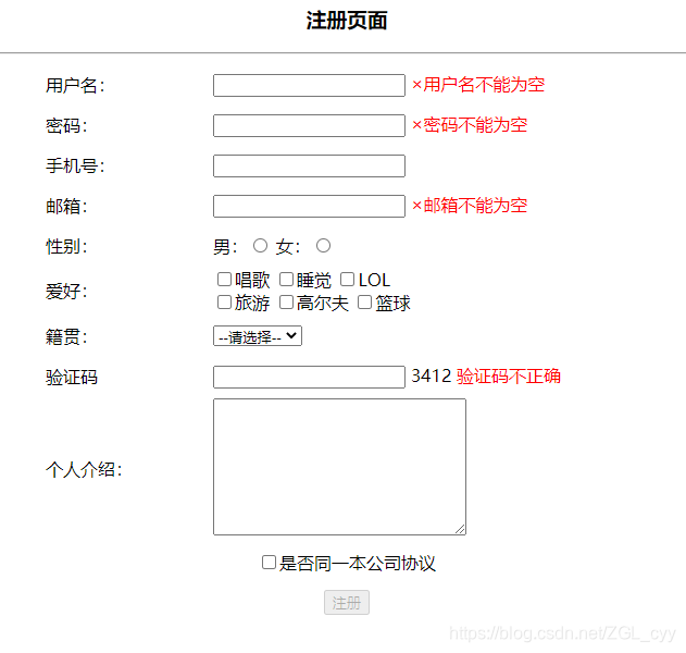 <h3>注册页面</h3>