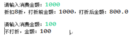 需求:根据输入的消费金额,输出对应的折扣和折扣前后的金额.