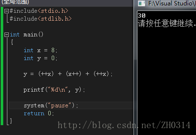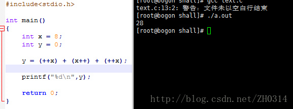 在Linux环境下,输出的结果是是28,但是在Windows环境下,输出的结果却是30,这就和“++x”和“x++”有关了。