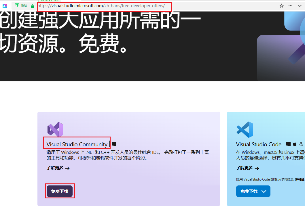 下载路径:免费的开发人员软件和服务 - Visual Studio