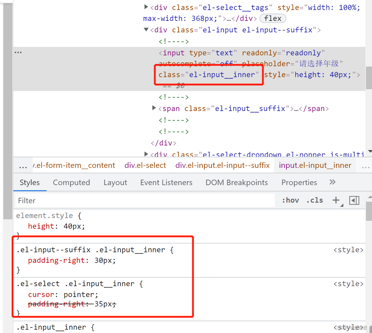 (示例):修改el-select下拉框的样式(修改它的边框大小)