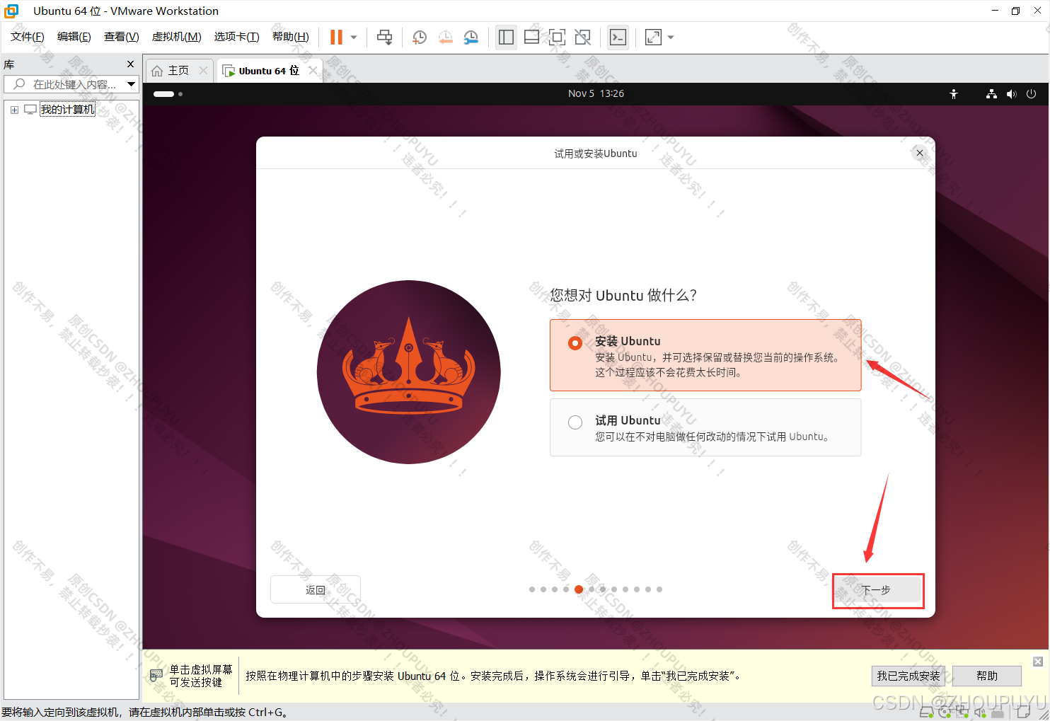 11.选择【安装Ubuntu】,然后点击下一步