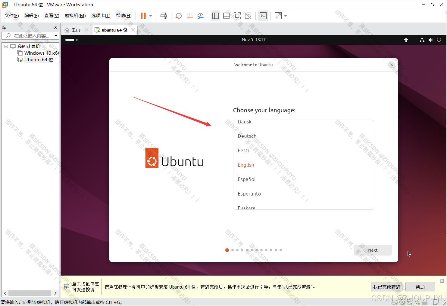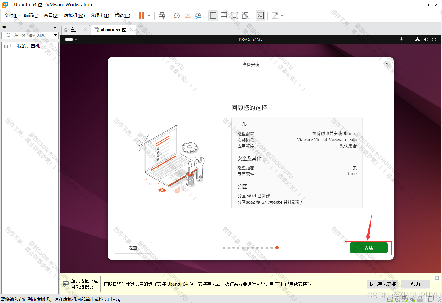 1.如果在安装Ubuntu过程中,遇到第18步安装卡住不动。