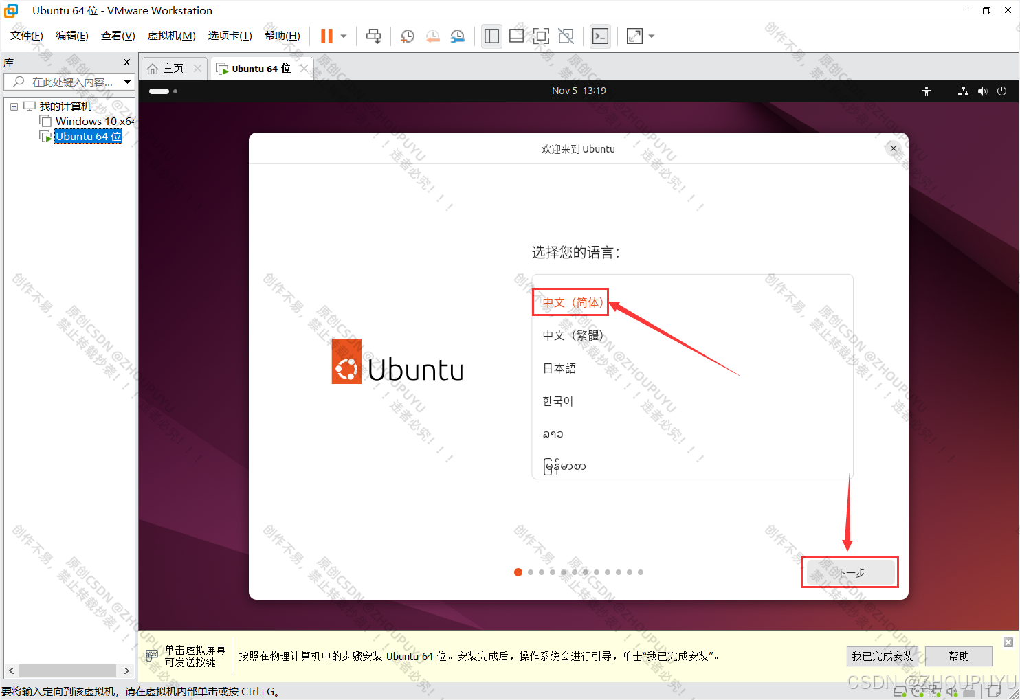 7.语言选择【简体中文】,然后点击下一步