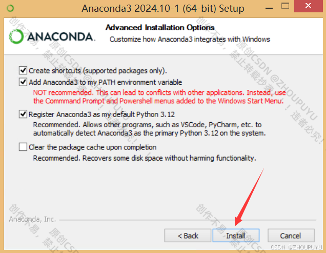 第二项勾选使用自动配置环境变量,就会自动配置环境变量,之后在cmd中就可直接运行conda命令,python命令等。