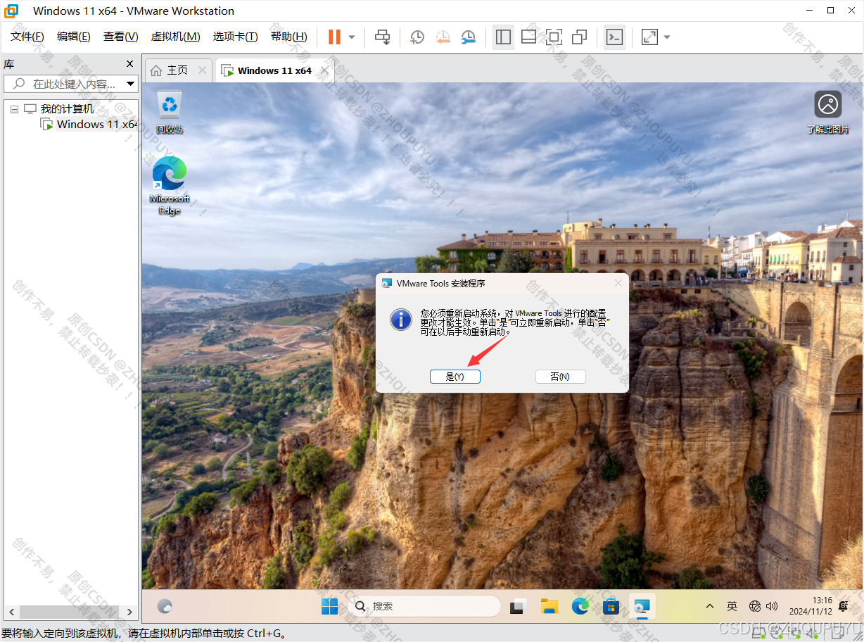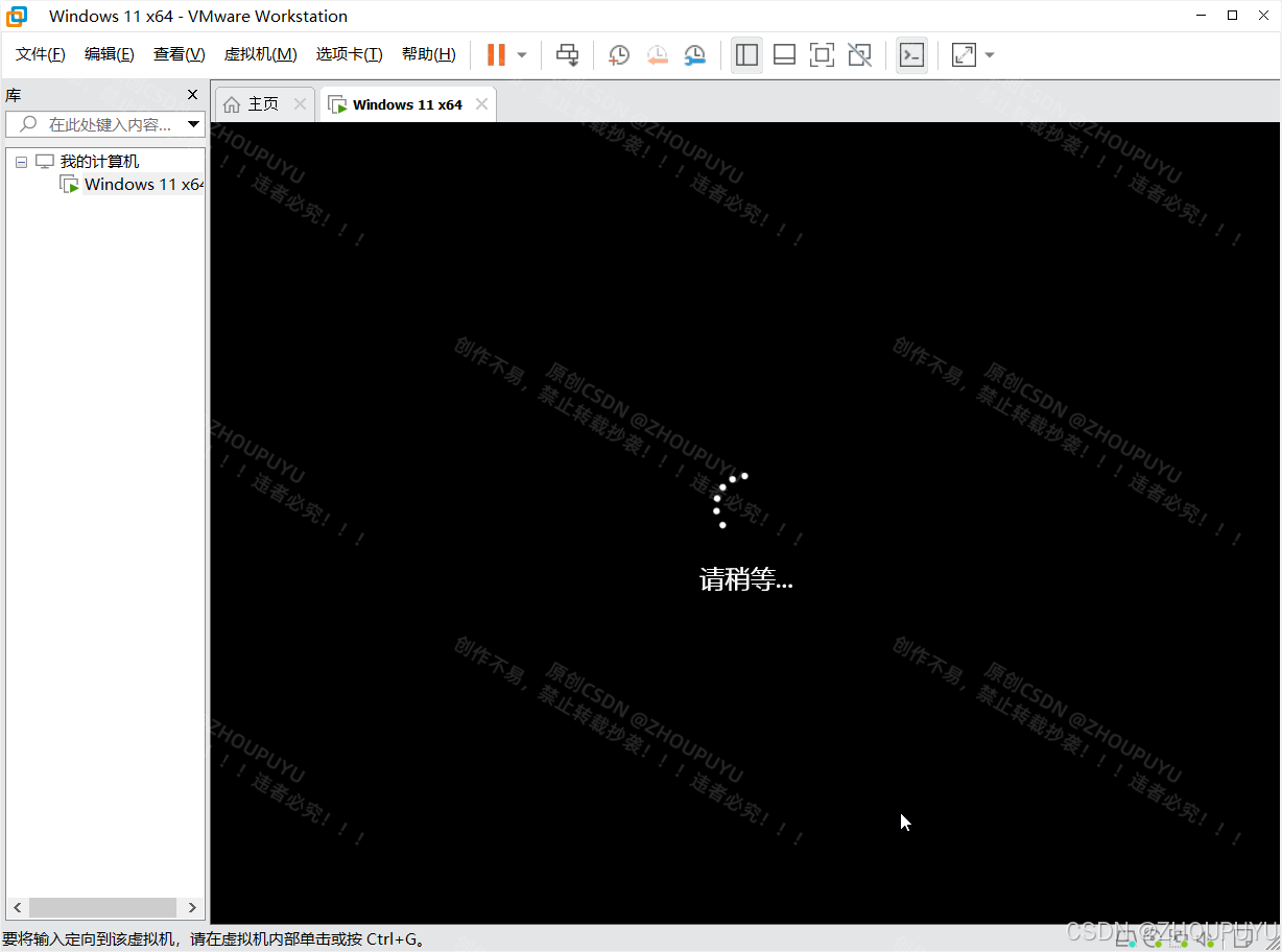 如果点击安装Tools虚拟机黑屏,点击虚拟机内Windows11桌面任意区域即可重新显示桌面。