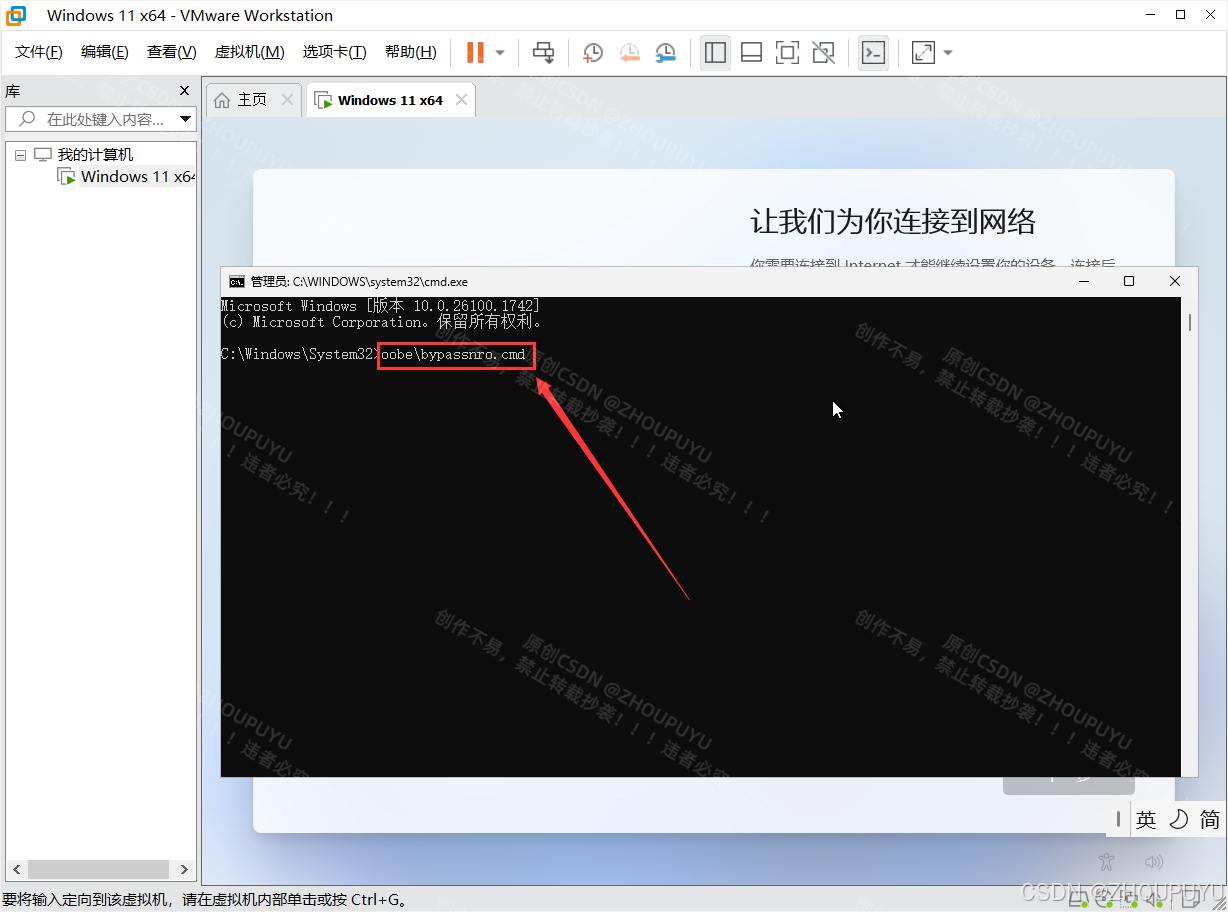 2.输入命令oobe\bypassnro.cmd,然后按下回车键(Enter)