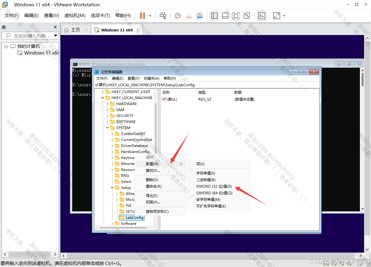6.右键LabConfig,新建DWORD (32位)值(D),命名为 BypassSecureBootCheck