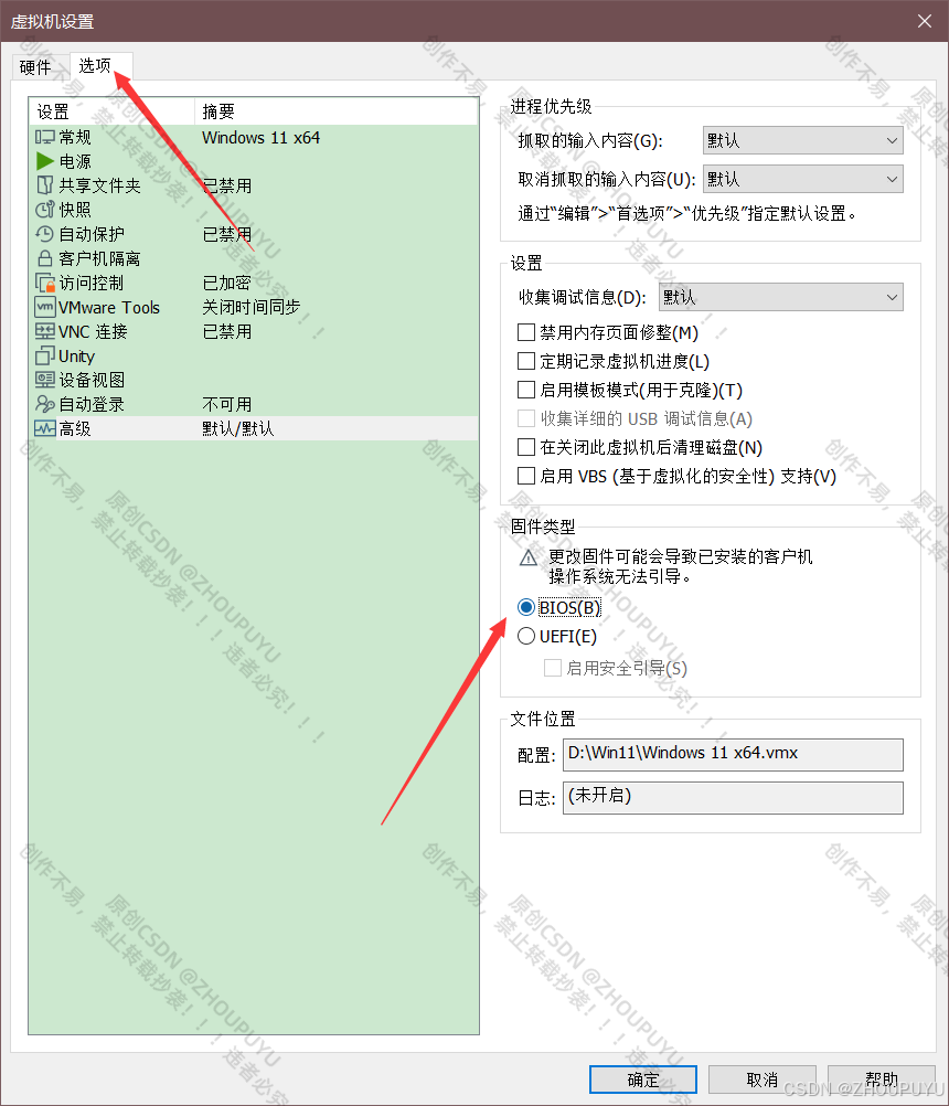 点击选项,再点击高级,勾选设置固件类型为BIOS。