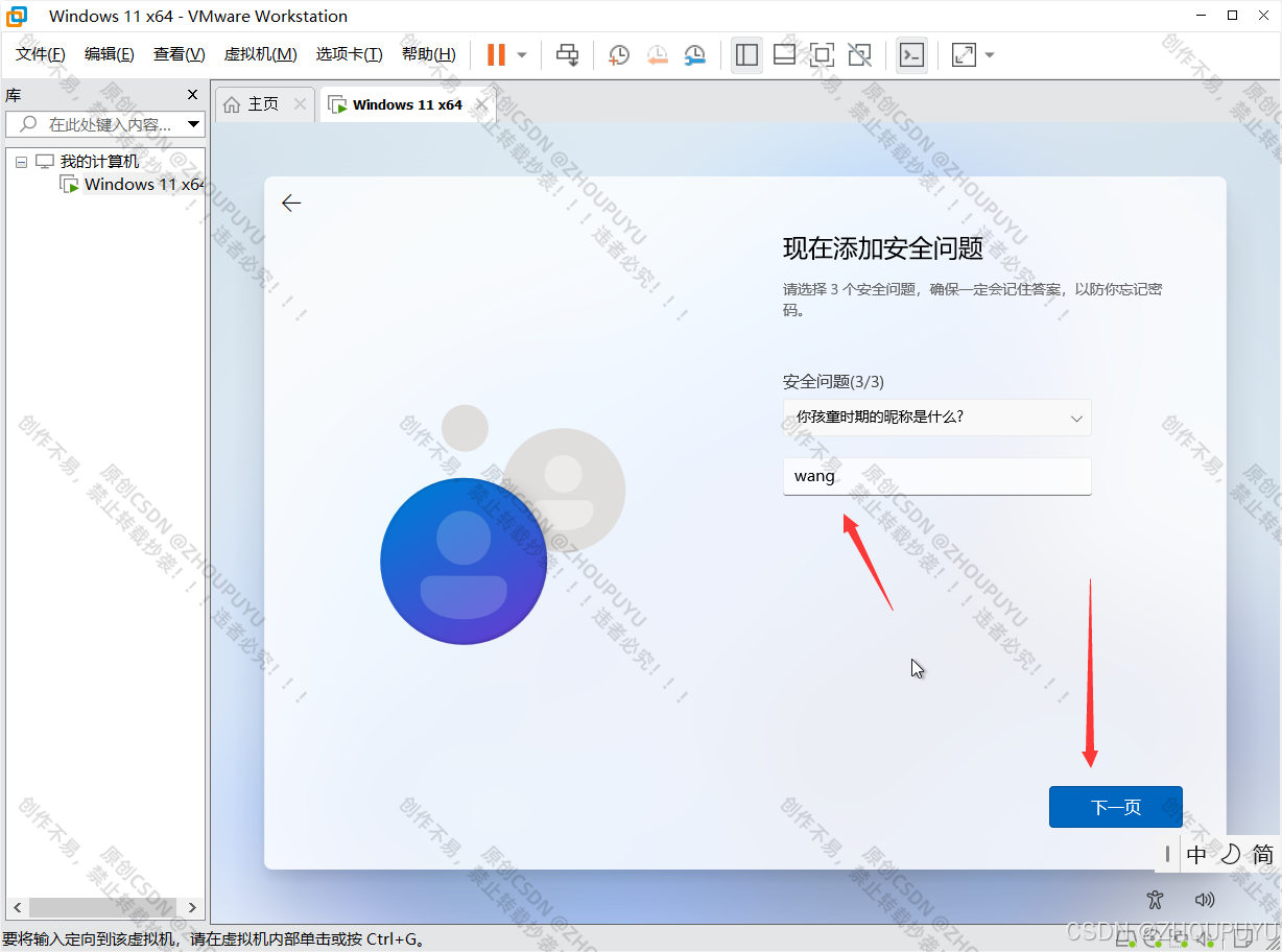 这里建议使用弱密码 如123456,以免忘记密码。输入密码之后,点击下一页。