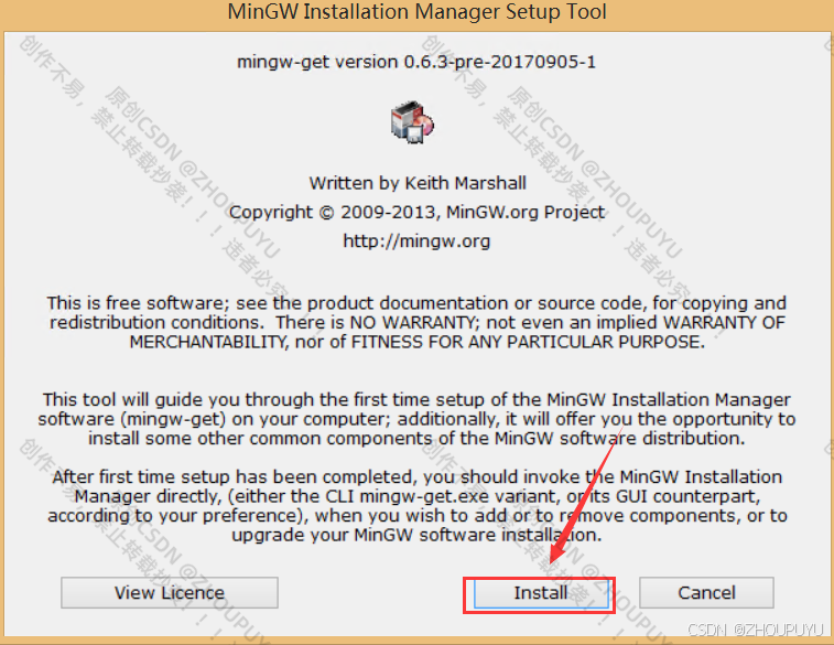 点击 这里 进入官网下载MinGW安装包。(MinGW的所有软件都将在64位Windows平台上执行,所以不管32位还是64位都是一样的。)