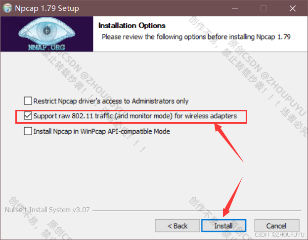 3)Install Npcap in WinPcap API-compatible Mode:兼容WinPcap模式,可勾选