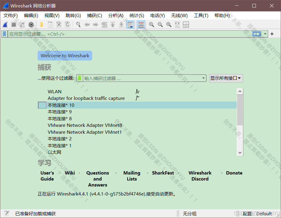 接下来开始正式对Wireshark工具进行使用介绍: