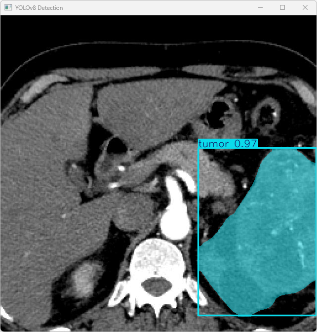 YOLOv8模型成功检测到 1 个肿瘤,推理速度良好。