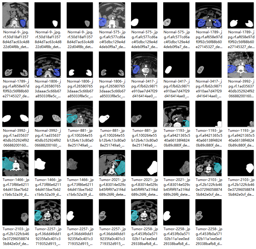 本研究使用了包含肾脏肿瘤分割相关图片的数据集,并使用Labelme标注工具对每张图片中的分割结果及类别进行标注。基于此数据集,采用 YOLOv8n 模型进行训练。训练完成后,对模型在验证集上的表现进行了全面的性能评估与对比分析。整个模型训练与评估流程包括以下步骤:数据集准备、模型训练、模型评估。本次标注的目标类别主要集中于肾脏肿瘤分割相关图片。数据集总计包含 3921 张图像,具体分布如下: