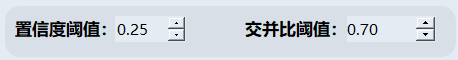 (2)交并比阈值:当前设置为0.70,表示系统只会认为交并比(IoU)超过70%的检测框为有效结果。交并比是检测框与真实框重叠区域的比值,用于衡量两个框的相似程度,值越高表明重叠程度越高。