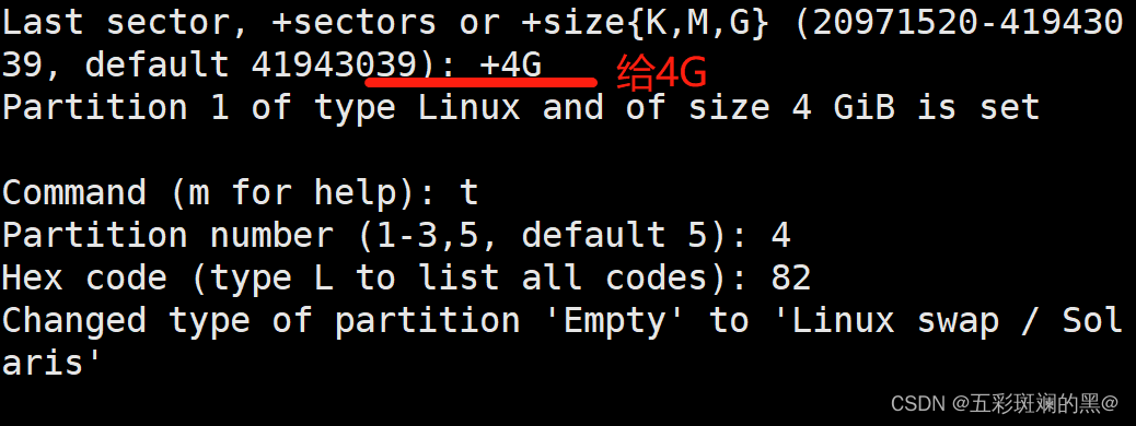 6、最终给这个区的大小 last sector +5G (只能给整数)