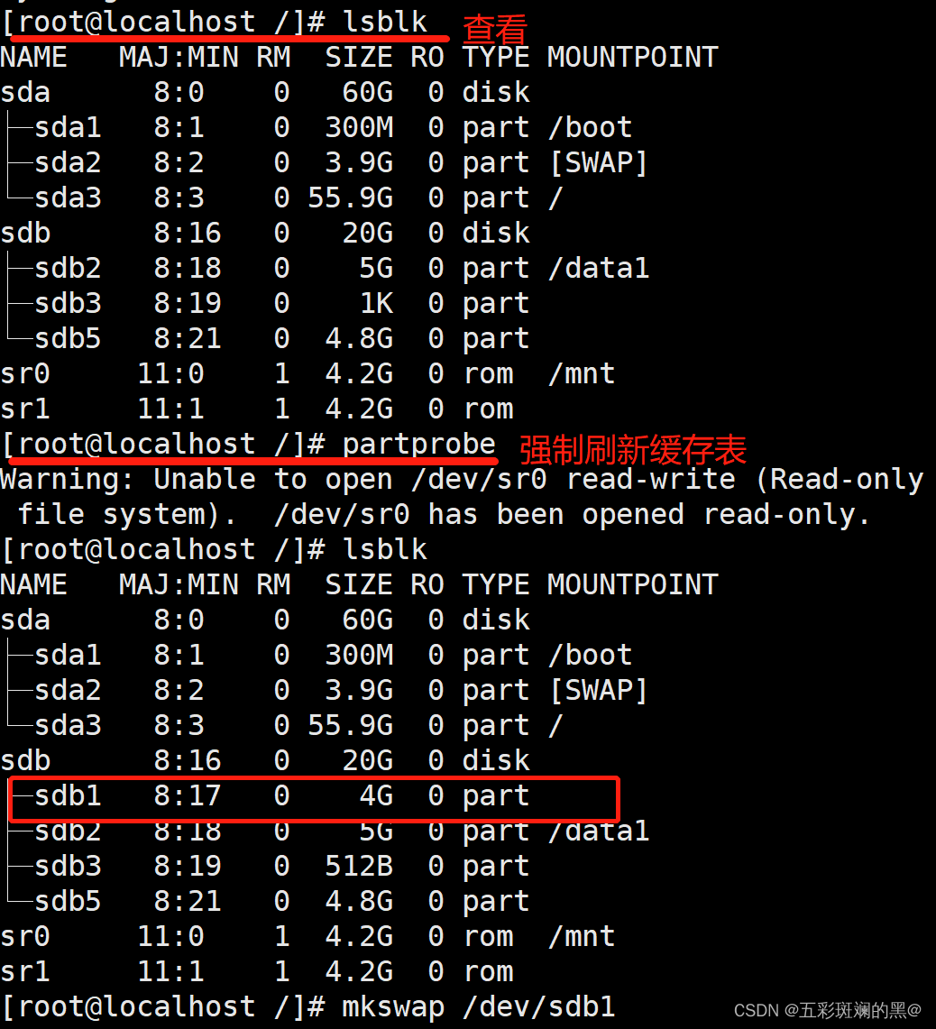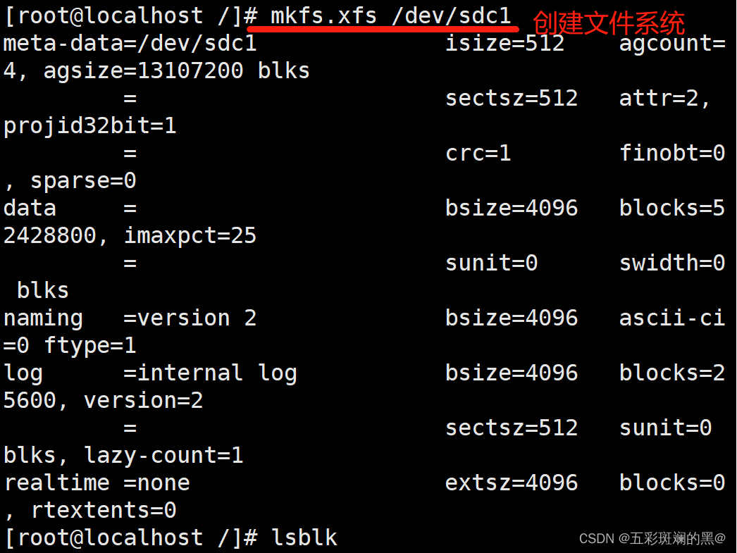 ② mkfs . xfs /dev/sdb1 (也相当于格式化)