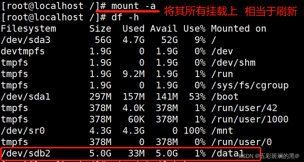 remount 重新挂载已挂载的文件系统,一般用于指定修改特殊权限
