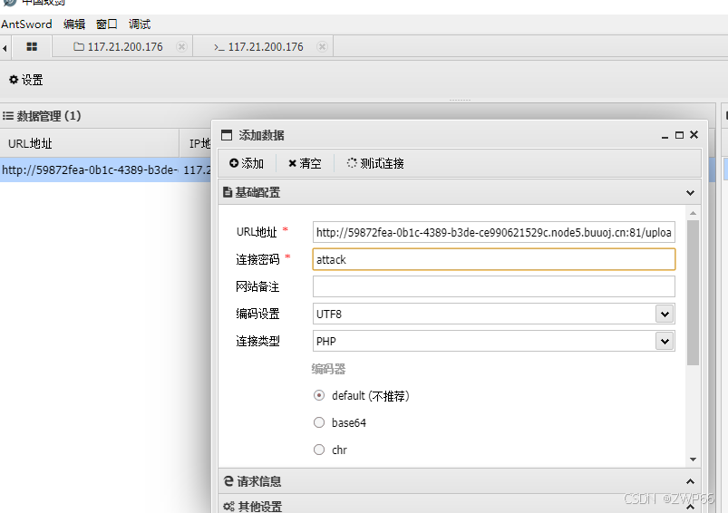 使用蚁剑进行链接,这里的链接密码是一句话木马中的。