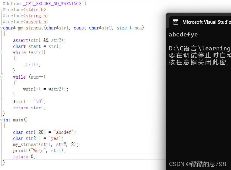 while (n && (*str1++ = *str2++))//复制字符串,并考虑n小于或等于被拷贝字符串数目的情况