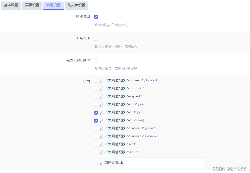 点击网络下的接口,删除vpn相关的接口。在WAN口和LAN口的物理设置中选择更改你网卡上的WAN口和LAN口